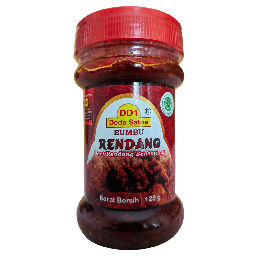 Welcome to Dede Satoe! Our instant rendang seasoning is a delightful blend of aromatic spices carefully crafted to help you create a rich and flavorful rendang dish with ease. With this seasoning, you can enjoy the traditional complex taste of rendang without the lengthy preparation. Indulge your taste buds with the warm aromas of coriander, cumin, and turmeric, complemented by the earthy flavors of ginger and galangal. This blend also brings the refreshing essence of lemongrass and the savory appeal of garlic and shallots. These ingredients work harmoniously to deliver the authentic taste of rendang that will transport you to the vibrant streets of Indonesia. With a simple addition of your choice of protein and coconut milk, this instant rendang seasoning effortlessly infuses your dish with a symphony of flavors. Whether you are an experienced chef or an aspiring home cook, this seasoning allows you to create delicious rendang that will impress your family and friends. Advantages: MSG free Free of synthetic coloring agents Halal Tested Certified HACCP, US FDA, GMP, Halal. Ingredients: Chili, Palm Oil, Shallots, Garlic, Salt, Galangal, Candlenut, Grated Coconut, Ginger, Turmeric, Lemongrass, Coriander, Pepper, Nutmeg, Kaffir Lime Leaves, Bay Leaves, Tamarind, Cardamom, Clove, Cinnamon, Cumin, Potassium Sorbate. Net Weight: 125 grams Directions: Available on product packaging By purchasing Dede Satoe products, you are also helping to improve the welfare of local women around the industry. Thank you.